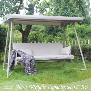 It would be a great choice to relax on this swing chair at your break time.It's made of strong metal frame,holds for 600lbs easily.More important is it could be changed from a 3 person chair seat to a double bed.