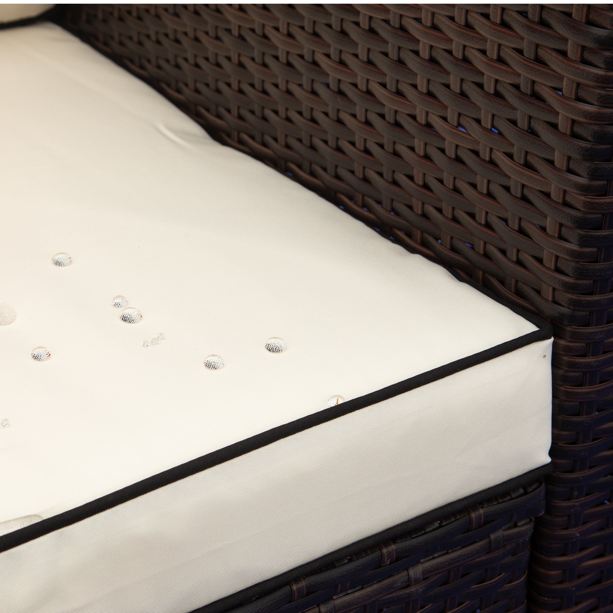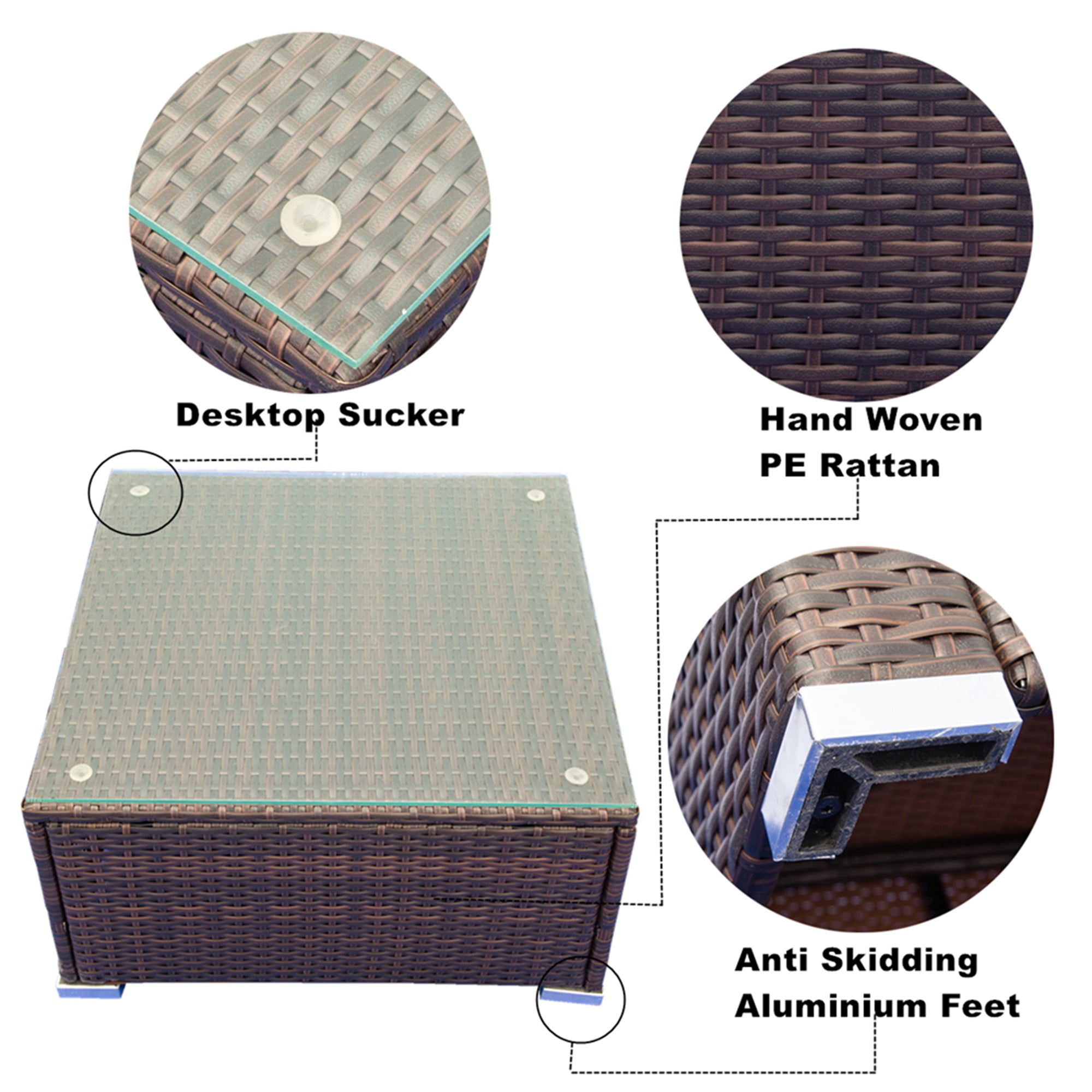 STURDY & DURABLE : Powder coated rust free frame with reinforced aluminium legs that can support up to 280 pounds per seat and 110 pounds for table. All-weather hand woven rattan, eco-friendly and mould resistant