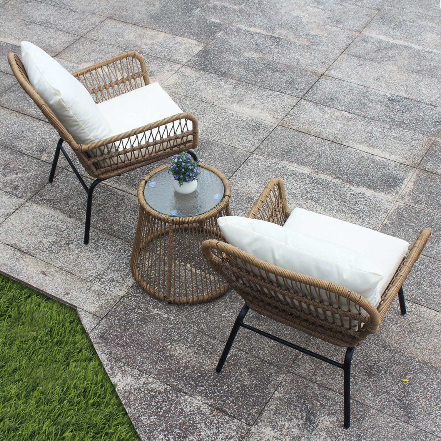 - Modern Design - With clean lines contrasted perfectly by its round edges, our rattan chat set is the ideal modern accessory for your outdoor space. Finished with thin angled legs, this set not only offers a sleek, minimalistic look but also provides a stable structure